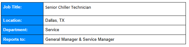 We are looking to hire a senior Chiller Technician to focus on the repair, maintenance and operation of chiller systems.