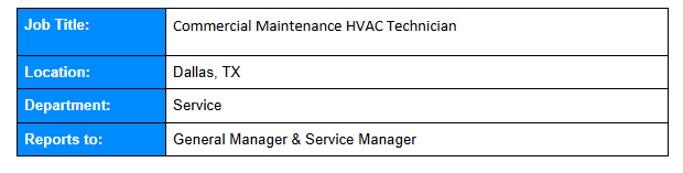 • HVAC Trade School degree and OSHA 10 Hour training are a plus
